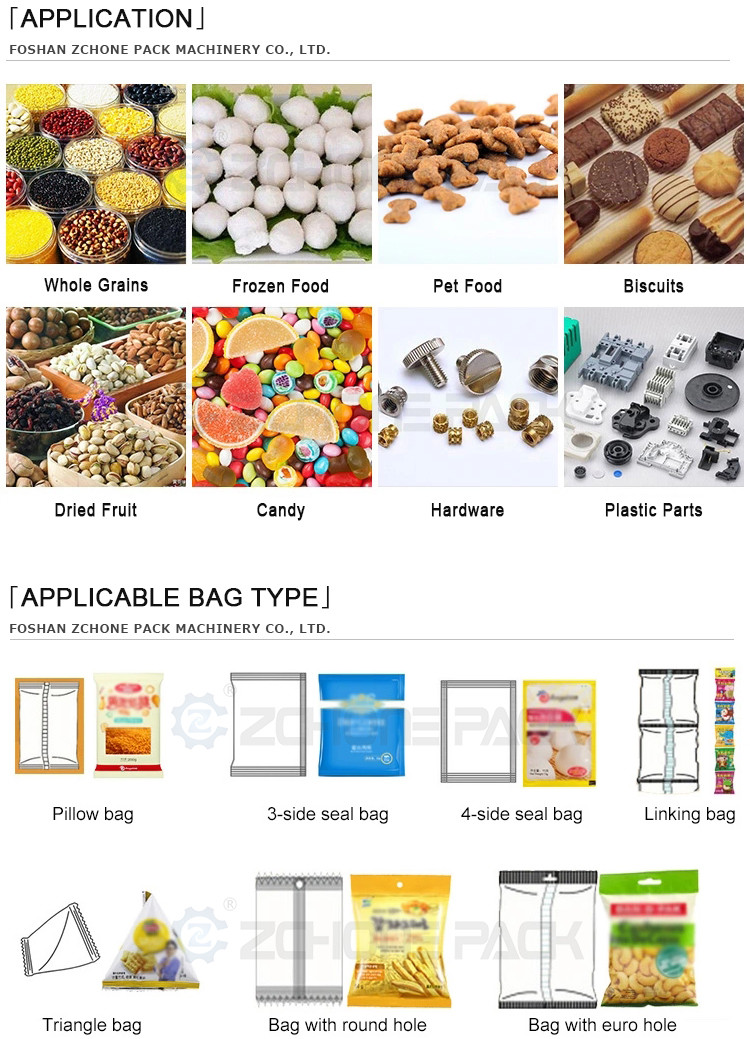 مناسبة للعديد من أنواع معدات القياس، وتغليف أنواع مختلفة من المنتجات؛ مثل الغذاء المنتفخة، لفة الجمبرى، الفول السوداني، الفشار، دقيق الذرة، البذور والسكر الخ الذي شكل لفة،شرائح و حبيبات.